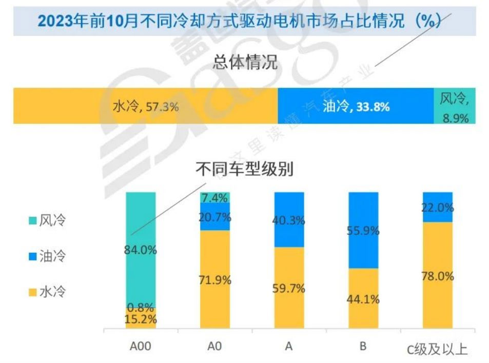 蓋世汽車研究院高級分析師在大會上針對電驅動產業趨勢及新技術進行了詳盡分析,指出,隨著新能源汽車在更廣泛的應用場景中滲透,對于驅動電機的峰值功率、運行效率、響應速度和振動噪音等多項性能提出了更高的要求,“新一代電驅動系統基本上已切換至油冷電機方案,相較水冷,油冷因具備絕緣性好、冷卻效果佳等特點,能夠兼顧低速大轉矩下的定子繞組溫升和高速大功率下的磁鋼溫升,可改善電機效率?!睋w世汽車研究院數據,截止今年10月,乘用車領域,油冷電機市場占有率已達33.8%,而B級車油冷電機應用已達到55.9%。同時,在商用車領域,低速重載、倒車等工況中傳動機構齒輪攪油潤滑冷卻效率低導致動力傳動系統失效風險的凸顯,也進一步強化了電子油泵在新能源商用車中的重要作用和關鍵零部件地位。